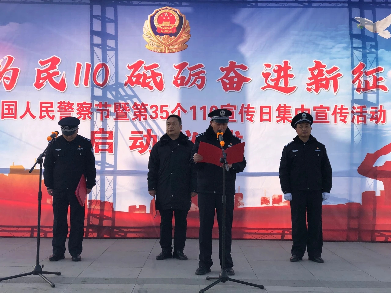 为庆祝首届中国人民警察节,迎接全国第35个“110宣传日”,在全社会营造浓厚宣传氛围。1月10日上午,鹿邑县公安局在弘道苑广场举办首届人民警察节暨110宣传日集中宣传活动。县委常委、政法委书记张国庆,县政府副县长、公安局长任金瑞出席活动并讲话,县局党委委员、民警代表,12345公众服务热线、金融、电信、社会公益组织等单位参加。