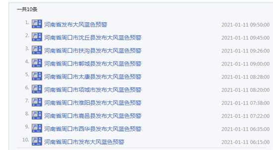 周口发布蓝色大风天气预警