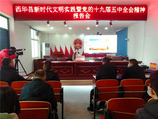 1月15日,西华县东夏亭镇举行“西华县新时代文明暨党的十九届五中全会精神”报告会。周口师范学院马列主义研究院朱惠娟教授作宣讲报告,全体镇干部、驻村第一书记、工作队长、工作队员参会。