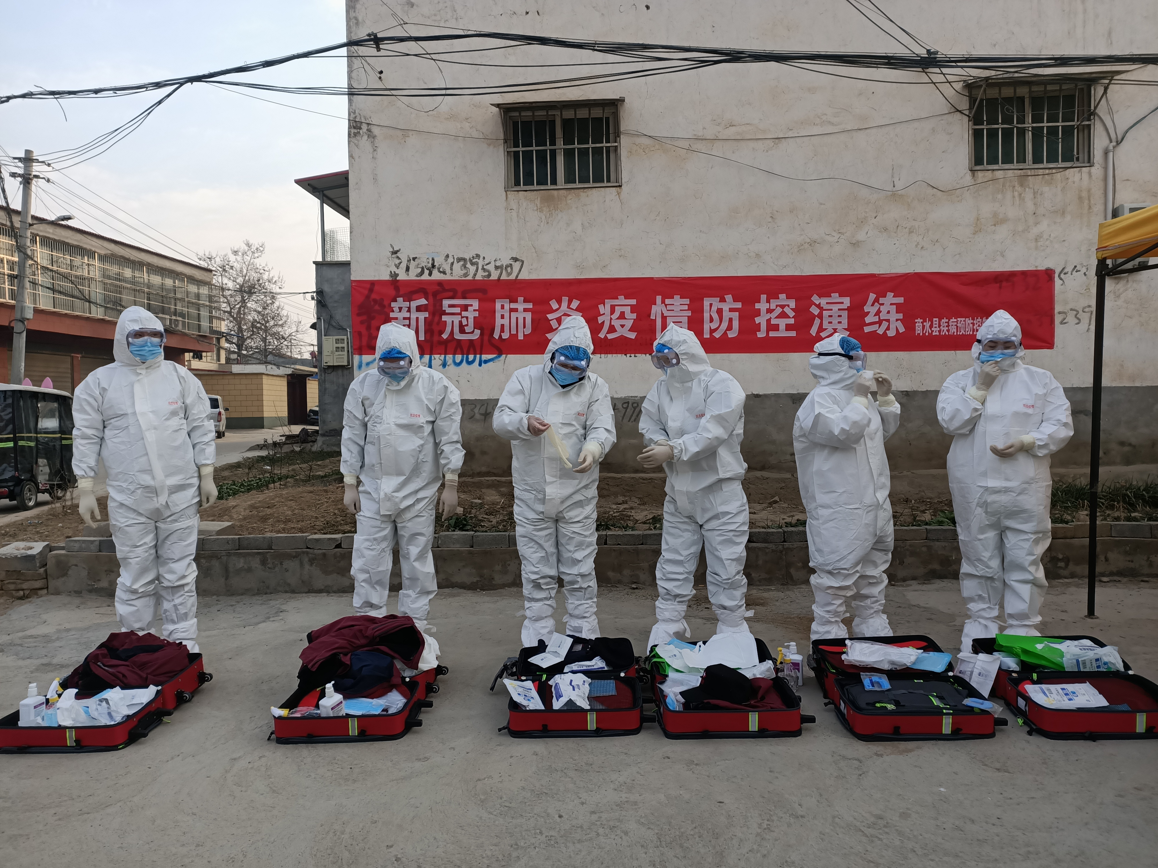 1月20日8时,排列整齐的队伍在商水县疾控中心院内列队待命,一场紧张严肃的新冠肺炎疫情防控应急演练拉开序幕。