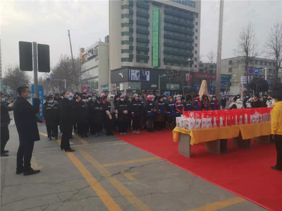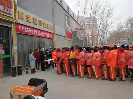1月20日是传统节日腊八节,一大早,中心城区万顺达广场就为川盛环境有限公司的环卫工们准备了腊八粥和毛巾、口罩等防疫物资,阿里市场为每名环卫发放10元代金券,持劵可在市场内消费购物,爱心企业为辛勤的城市美容师在寒冷的冬季送上了一份暖心的祝福。
