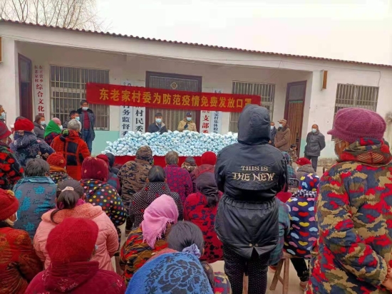 据了解,东老家行政村在外务工人员较多,在家留守的老人特别是贫困家庭的老人大多没有准备口罩。村党支部书记刘杰了解到这一情况后,结合春节临近,外出务工返乡人员逐渐增加的现状,决定购买2万只口罩,免费向本村六十岁以上老人、贫困户家庭人员、村小学师生每人发放50只,确保他们的个人疫情防控所需。