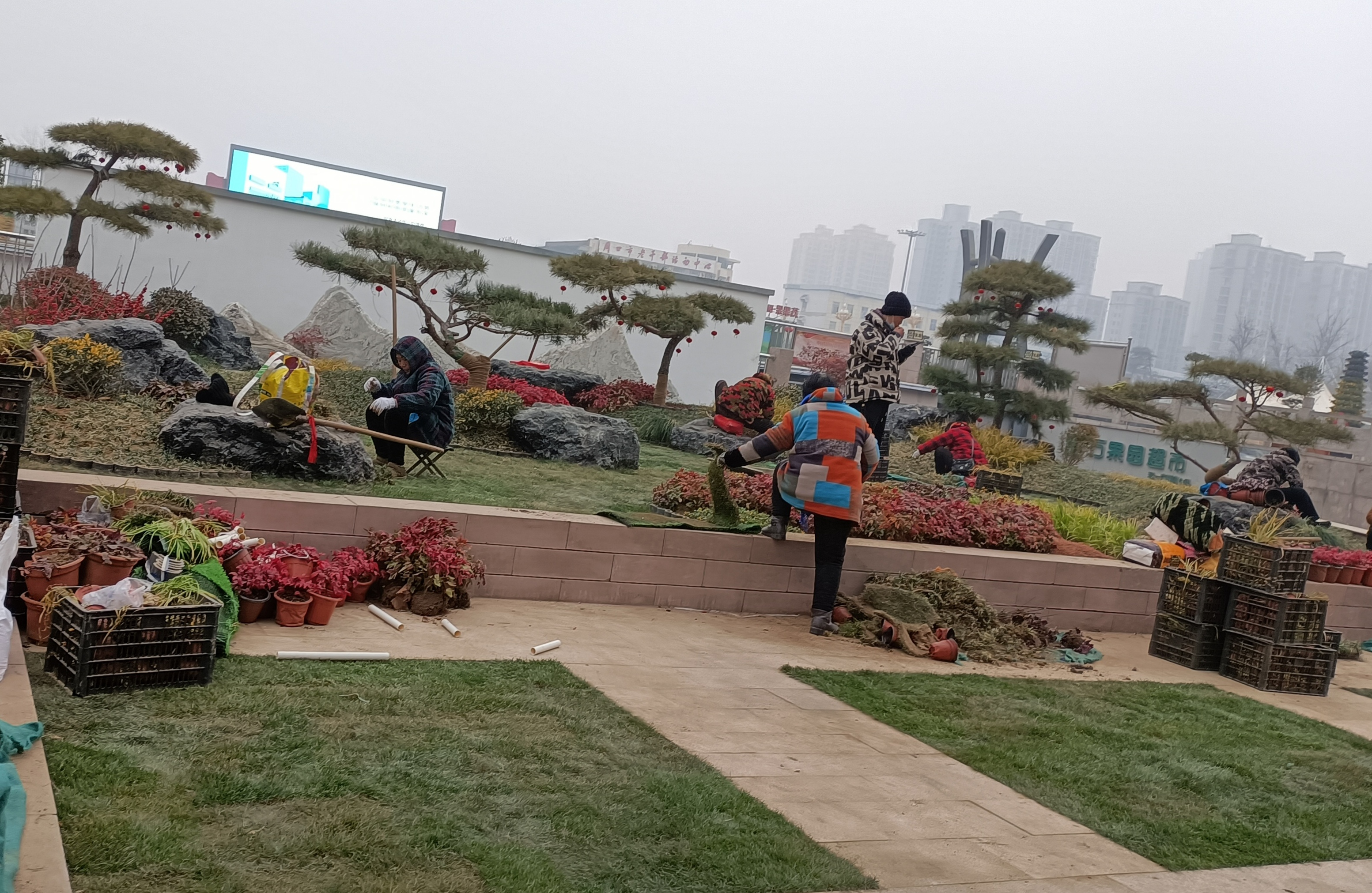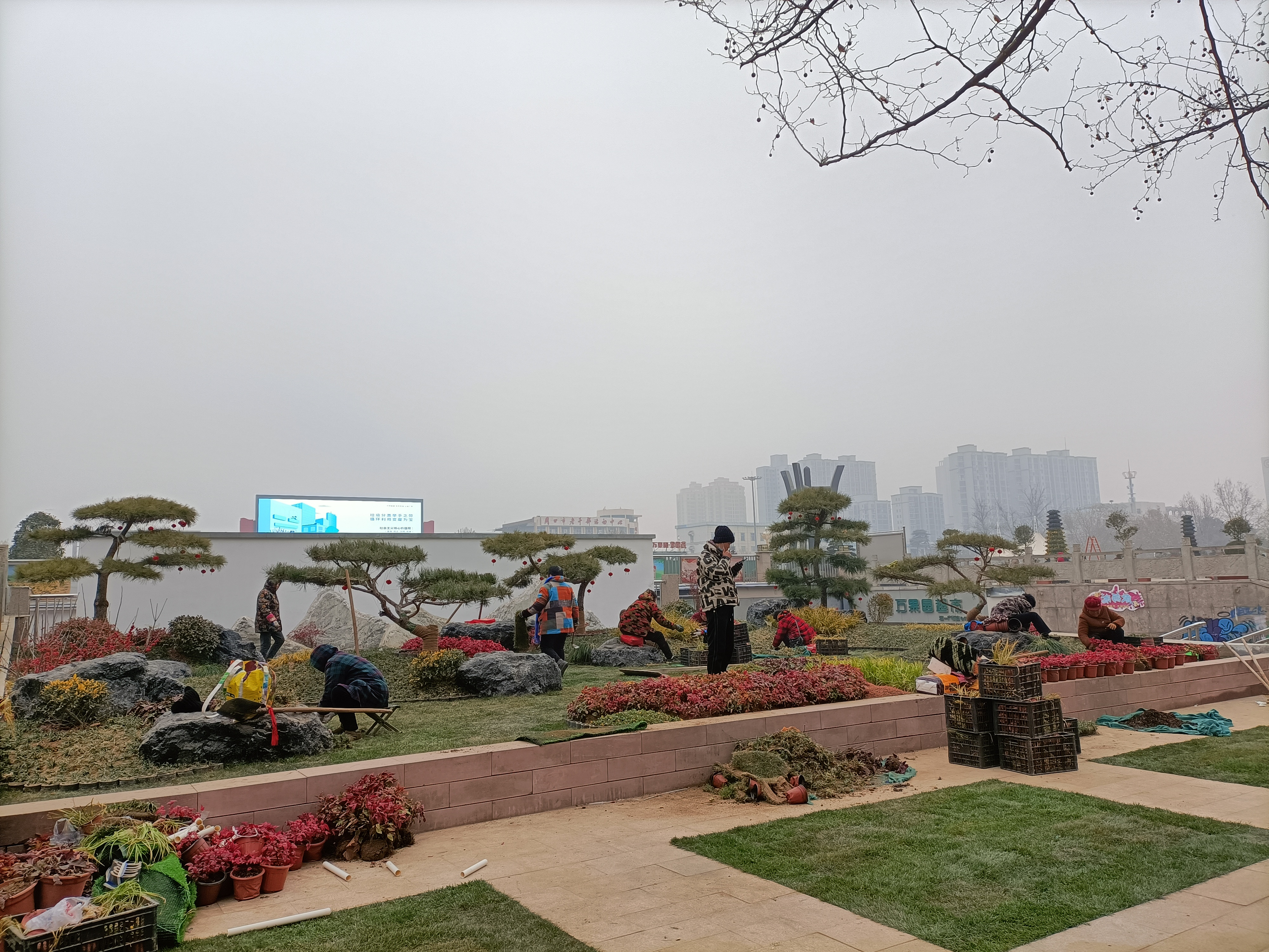 我市拿出“绣花”的功夫,实施城市“微景观”,改善人居环境,不断提升城市品质。23日上午,在周口五一文化广场,园林工人工作中。