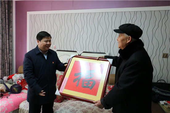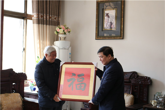 在新春佳节来临之际,1月28日上午,带着对离退休老干部的浓浓祝福和深深关怀,鹿邑县委书记、县长李刚,县委常委、县委办公室主任侯自峰,副县长翟杰,先后到刘景荣、梁永钊、陈万敏、丁钦印、杨德平等退休老干部家中看望慰问,为他们送去新春的祝福和问候。
