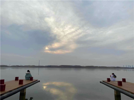宽阔浩淼的水面、古香古色的船只、天空水中共徘徊的云影、充满艺术感的建筑、富有趣味的彩色沿湖跑道……初展姿容的永宁湖(原伏羲湖)湿地公园,吸引着众人的目光和脚步。