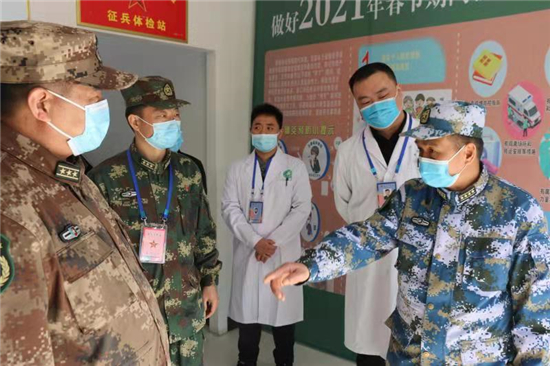 汤维政走进内科、外科、五官科、心电图、心理测试等检查科室,实地查看体检站基础设施、体检流程、人员配备、疫情防控、后勤保障等情况。他看到体检场所按照流程合理、尊重隐私、闭环管理的要求,结合疫情防控的需求优化诊室设置,医务人员严格把控体检项目的各个关口,给予了肯定和赞扬。汤维政与现场候检的应征青年亲切交谈,了解他们的年龄、学历、家庭等情况,对适龄青年、大学毕业生踊跃参军、报效祖国的行为表示赞赏,勉励他们积极接受祖国挑选,投身军营建功立业。