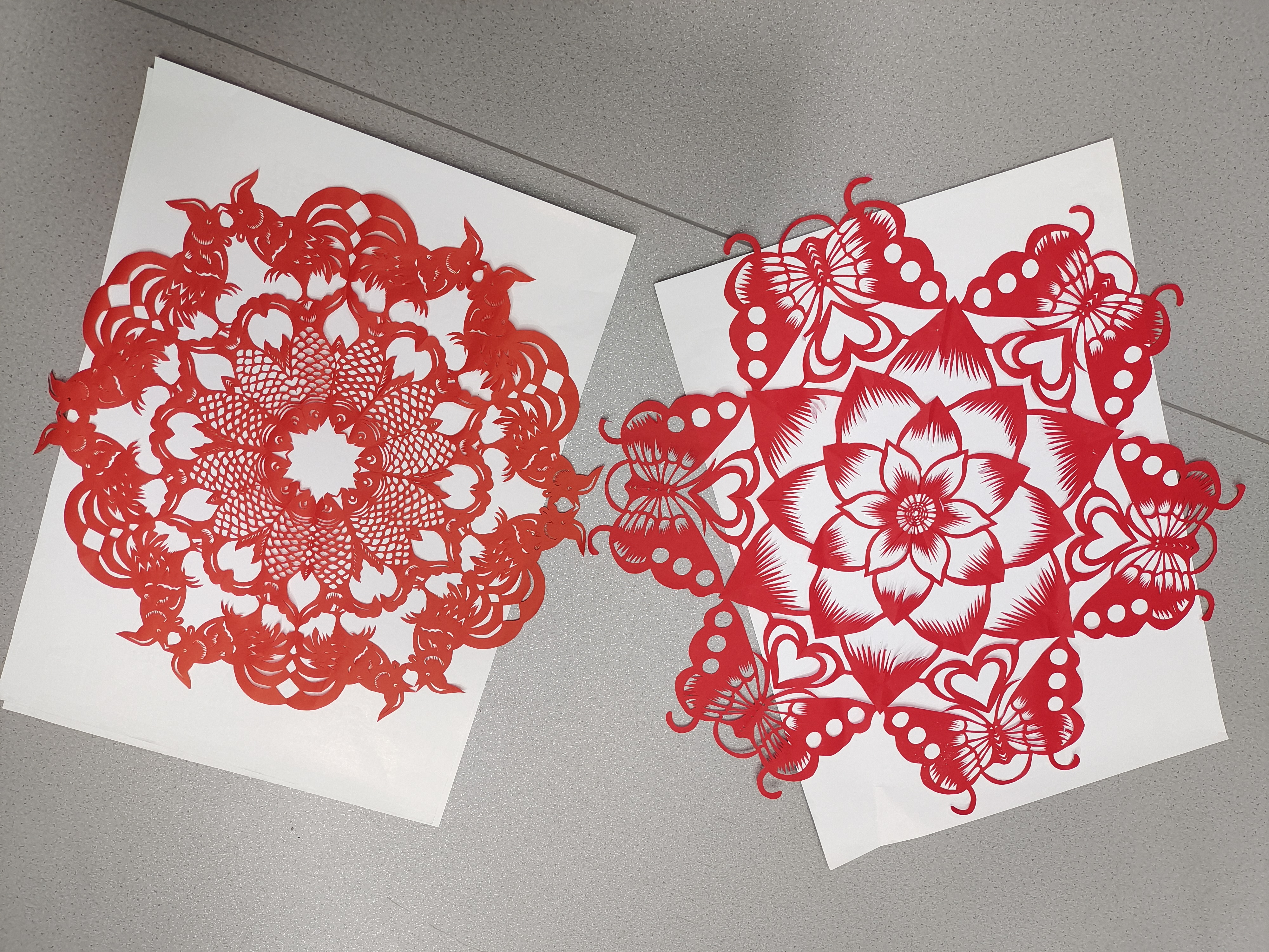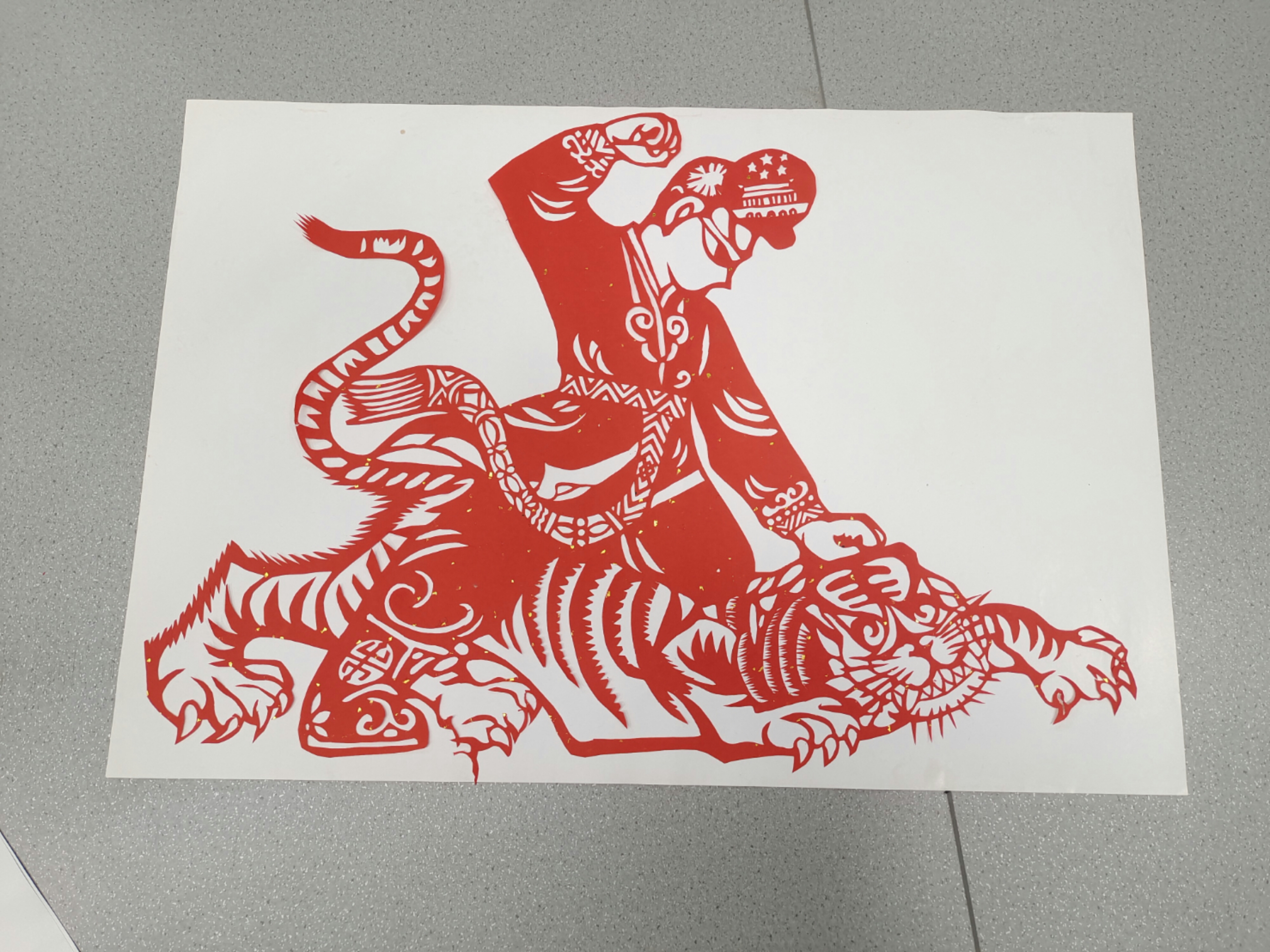 除了“红双喜“,王银生还现场展示了剪窗花,剪蝴蝶,并应着即将到来牛年的景剪了耕牛。只见平平常常的红纸在王银生的手中精准对折,上下翻飞,一把银亮的剪刀“嚓嚓”作响,很快就赋予红纸“生命”,剪出一个个生动的造型。展示完毕后记者对王银生进行采访,探寻他的剪纸之路。