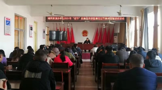 在春节、元宵节即将来临之际,川汇区城南街道办事处开展2021年“双节”前廉政党课暨廉洁过节集体谈话活动,要求党员干部增强廉洁自律意识、筑牢思想防线,确保过一个风清气正的“双节”。