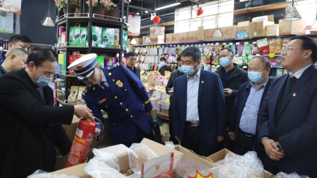 为落实河南省烟花爆竹禁售禁放工作电视电话会议和全市烟花爆竹禁售禁放暨春节期间污染防治工作会议精神,做好春节期间火灾预防、烟花爆竹禁售禁放工作,确保节日期间物资供应充足、市场秩序持续稳定,2月9日,周口港区党委书记孙鹏前往辖区居民社区、市场督导春节期间各项保障工作落实情况。港区党委委员杜广贤、公安分局局长康群泉陪同。