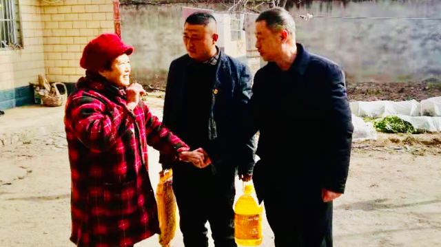 2月18日,春节后上班第一天,沈丘县洪山镇组织开展到村支"两委"换届中离任的村支部书记家中进行走访慰问,为他们送上党组织的关怀和节日的祝福。