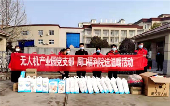 西华县无人机产业园党支部书记于天龙、县“两新”组织党工委办公室主任闫怀,带领党员、预备党员、入党积极分子,为周口市社会福利院的小朋友免费送去购买的尿不湿、洗衣液以及捐赠的衣服等用品,让小朋友们在即将来临的春节,感受到党的关怀及节日的温暖。周口市福利院齐院长详细介绍了福利院的基本情况及小朋友们的身体情况、生活状况等,并对无人机产业园党支部表示感谢。