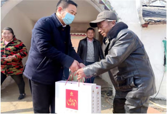 河南远东生物工程有限公司党支部在全国人大代表、公司技术部部长党永富的带领下,来到西华营镇来洼村走访慰问困难群众,为他们送去新春祝福和慰问品。