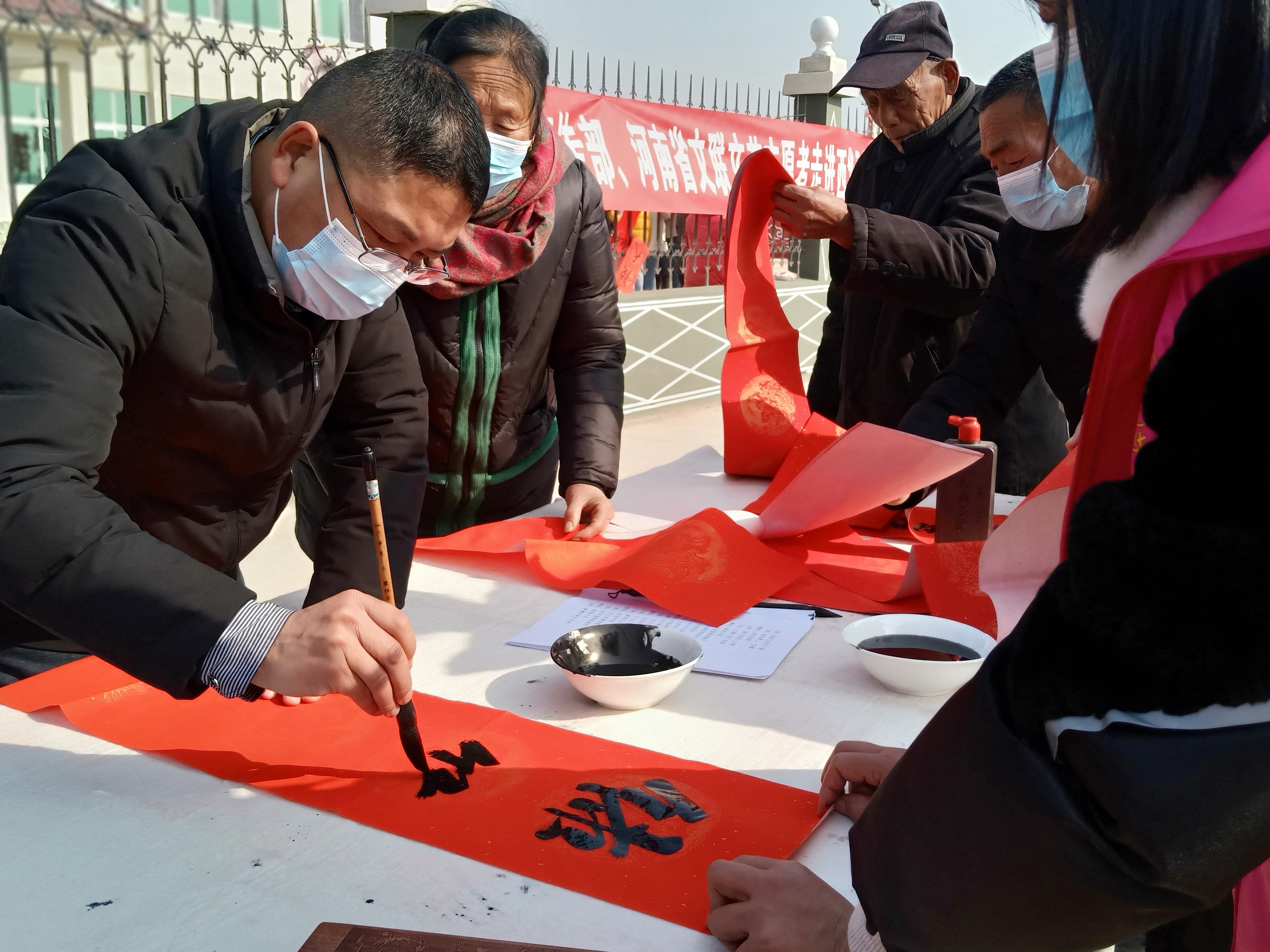 一大早,半截楼村新时代党群服务中心楼前大院里人头攒动、欢声笑语、翰墨飘香。一边是省文联志愿者义写春联送福,一边是文艺志愿者文艺培训。村民们喜领一副副散发着墨香的大红春联,脸上洋溢着幸福喜悦的笑容。