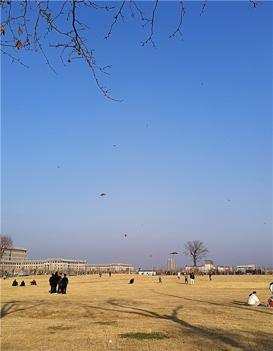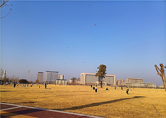 2月5日,我市天气晴朗,不少市民带着孩子来到户外,享受温暖的阳光、和煦的春风、与孩子一起放纸鸢的天伦之乐。