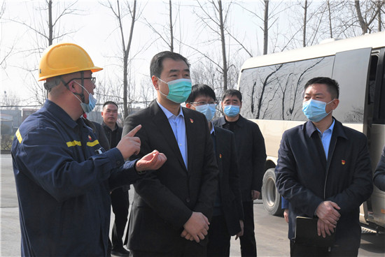 在中国石油商水油库,孔阳询问企业安全生产责任及值班值守制度落实等情况。他叮嘱企业负责人,要压实企业安全生产主体责任,规范和强化重大危险源安全风险防控工作,认真执行安全生产各项规定,坚持24小时值班制度,时刻绷紧安全弦,切实保障油库安全平稳运行。