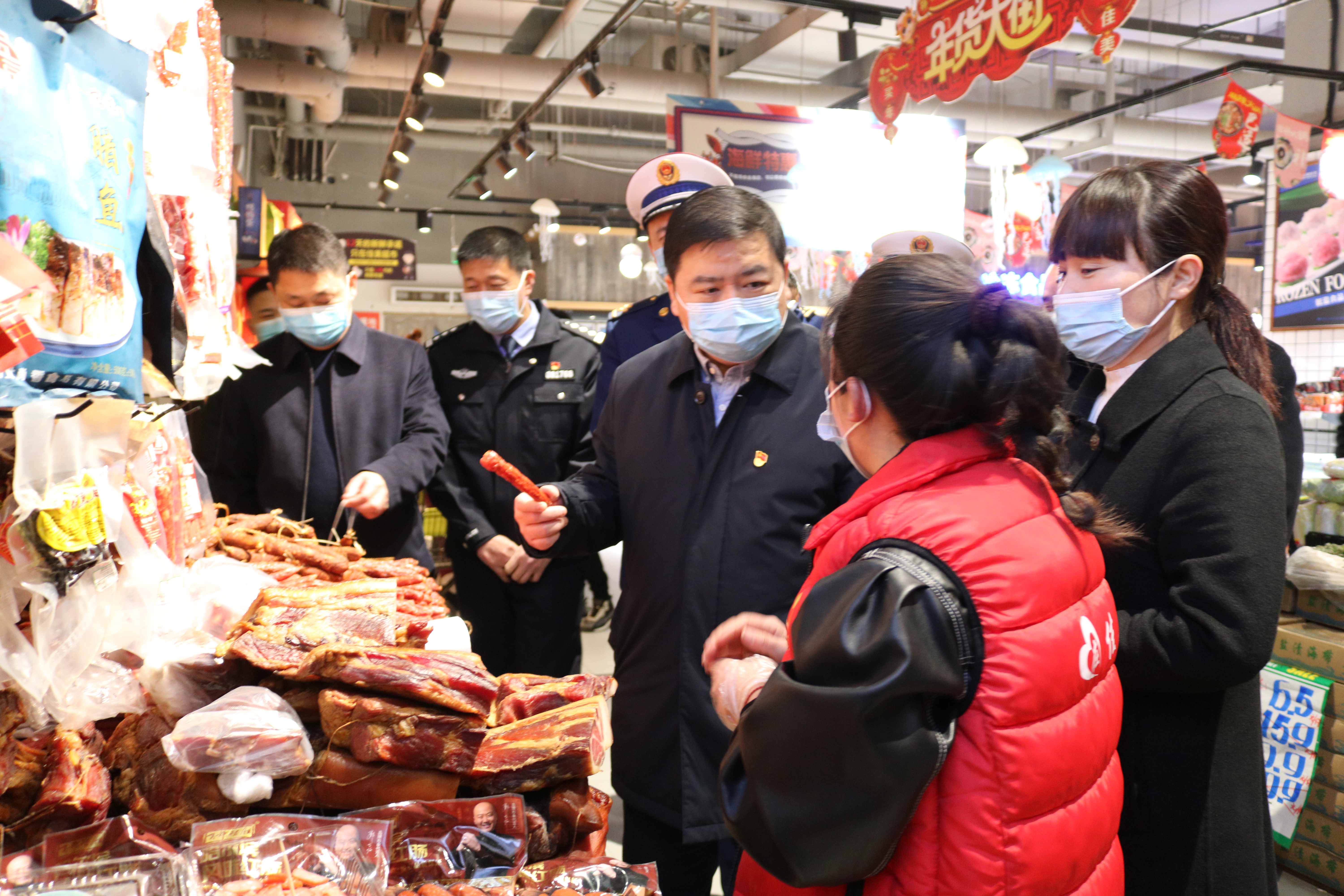 在佳美新时代超市,李刚来到食品区、生鲜区、综合区,了解节前物资供应、商品价格、食品安全等情况。李刚指出,临近春节,采购年货的人多,人员流通性大,疫情防控工作丝毫不能放松,要高度重视春节期间食品安全及市场供应情况,加大监管和巡查力度,加强监测和调控手段,确保价格平稳。同时要保持消防通道畅通、定期检修消防器材、排除安全隐患,让群众过一个平安、愉快、祥和的节日。