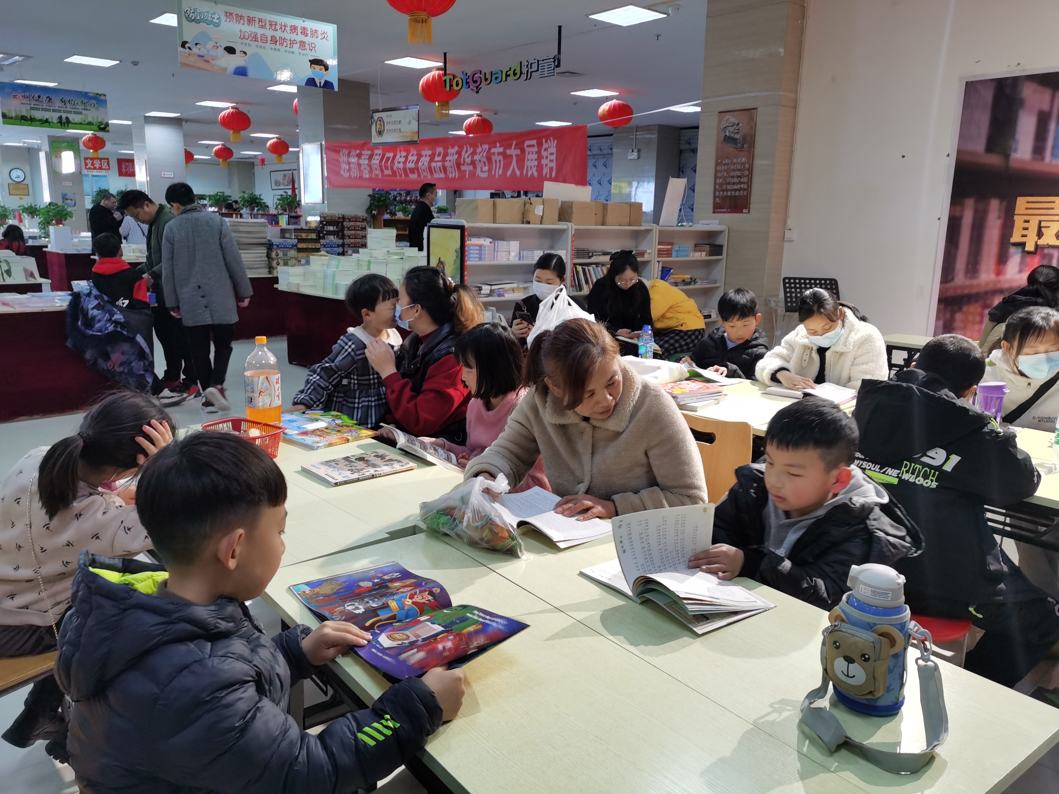 2月16日下午,记者来到中心城区万顺达广场北边新华书店,书店内比日常热闹许多,有不少市民在书店内选购书籍,其中不少是家长陪同孩子在书店内选购、翻阅图书。书店内还有许多书籍有不同折扣的优惠。为了方便市民,新华书店还腾出一块区域,放置了桌椅,增强了照明,市民可以在这静心地看书、休息。