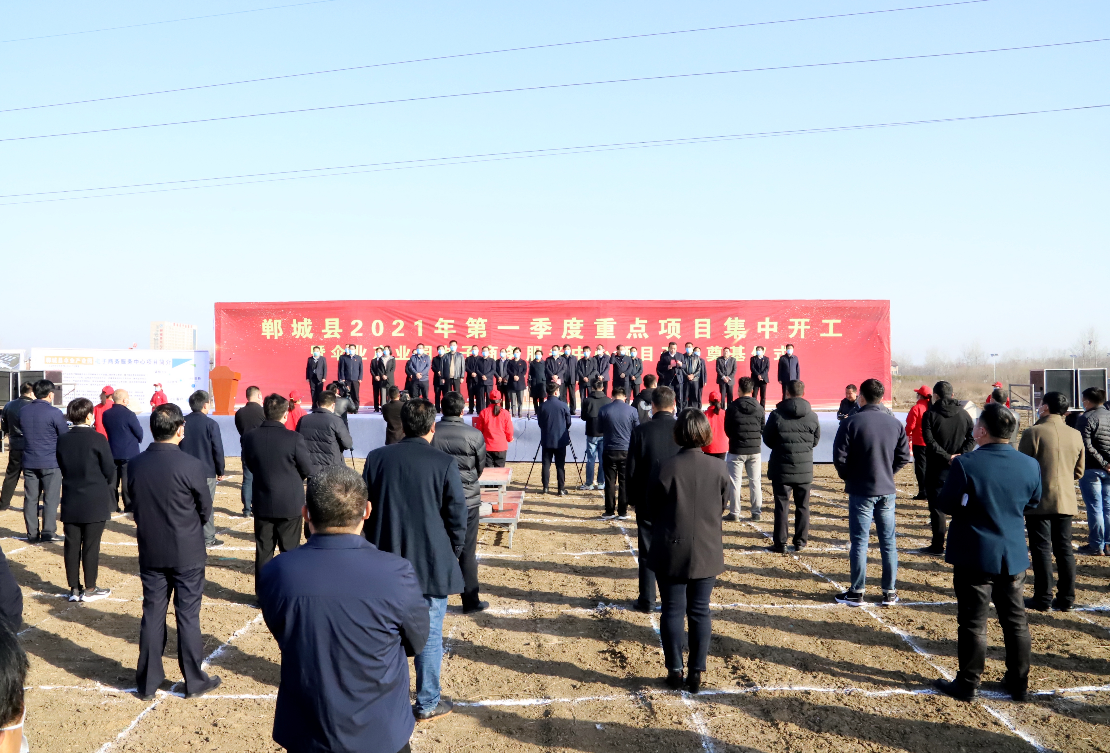 2月20日上午,按照省委、省政府,市委、市政府统一安排部署,郸城县举行2021年第一季度重点项目集中开工暨伞业产业园电子商务服务中心项目开工奠基仪式。市人大常委会副主任、郸城县委书记罗文阁出席开工仪式并下达开工令,县长李全林致辞,县领导李建军、王伟、常青、吴青锋、马超、胡友涛、薛燕、谢超、蒋磊等参加开工仪式。此次集中开工项目20个,总投资72.3亿元,年度计划投资40.3亿元,实现了全县2021年项目建设“开门红”。