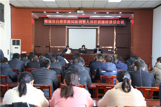 2月19日,郸城县自然资源局对新调整人员进行任前廉政谈话。会议由局办公室主任潘梅主持。局党组成员、副局长朱云英出席会议并讲话。局机关各股室及各自然资源所中层干部参加会议。