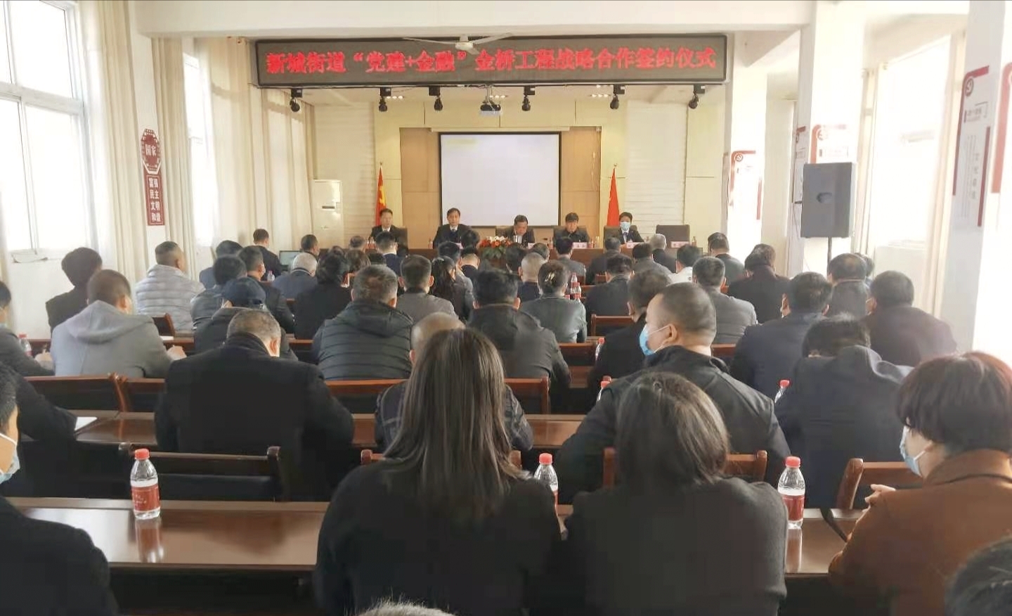 2月22日上午,新城街道办事处举行“党建+金融”金桥工程战略合作协议签约仪式。