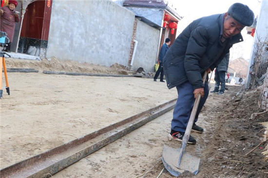 在宋河镇刘桥村,支部书记张殿魁正在带领村民平整路面。“我们村的主街道几年前就通了水泥路,但是部分小巷子因经费不足一直没有修通。”张殿魁说,年初镇党委组织召开全镇在外返乡人士优秀代表座谈会,得到了在外乡贤的积极支持,部分乡贤捐款,带动村内群众筹集费用,现在水泥路即将覆盖全村大街小巷。