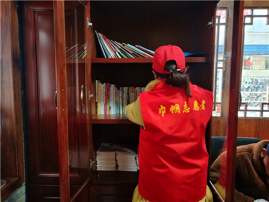 上午9点,天空中偶有零星小雨,市民驿站里却有几位市民正在这里读书,古色古香的书柜,整齐地摆放着各类书籍,文学、百科、养生书籍俱全。周口市慈孝文化促进会的志愿者每天都在值班,随时打扫卫生,为市民提供力所能及的帮助。
