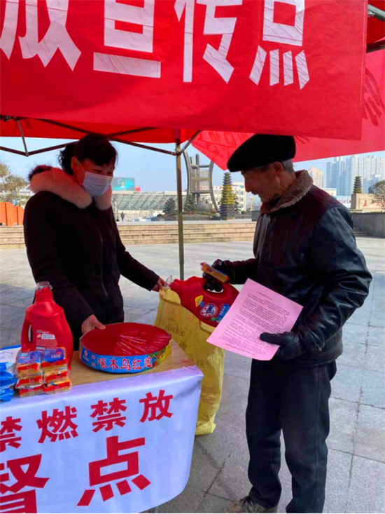 广泛宣传,营造氛围。通过发放彩页、悬挂条幅、转发微信群朋友圈等形式做好基础宣传,晓以利害,形成市民“不想放”的思想;通过城管宣传车、社区小喇叭移动宣传队、沿街商铺电子屏滚动播放标语等形式多方位、“固定+流动”的360°无死角宣传覆盖,形成辖区“不能放”的氛围;在五一广场、颍河沿岸等重点区域设置禁燃禁放值班点、烟花爆竹兑换点,引导群众拿出积存烟花爆竹兑换香皂、洗衣液等生活用品,并结合夜间综治巡逻队,“白+黑”全天候做好巡逻值班工作,形成群众“不敢放”的环境。