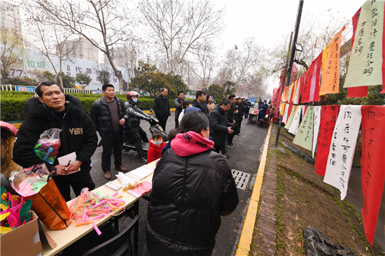 他说,让他难忘的是十多年前,在七一路市委门前的元宵节灯谜会上,人山人海,大家抢着猜谜。当很多人围着抢猜时,他不搭话,抢先拽下谜条,一张两张……,攥在手里,在一片惊讶、赞赏的目光中去兑谜底,作为一个农民,和满腹才学的知识分子一较高下,那是最开心的时刻。他外出打工,也是哪里有灯谜,他就设法赶去。他说,浙江一带猜谜活动非常多,大人小孩都喜欢。谜语文化是传统的东西,不能丢。他此次赶来周口猜灯谜是从周口日报、周口晚报的微信和周道发布的消息上知道,一大早搭公交车赶到市区,由于不知道华威民俗文化博物苑在哪?便一路打开手机导航赶到现场。