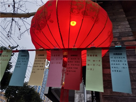 在元宵佳节到来之际,为倡导文明过节理念,营造和谐节日氛围,2月26日晚,在交通大道与文明路交叉口西北角市民驿站举行的趣味元宵节猜灯谜活动赢得了市民的热情参与。