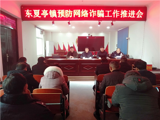 为预防网络电信诈骗事件的发生,保护公民的合法财产,3月1日,西华县东夏亭镇召开预防网络电信诈骗推进会。全镇23个行政村支部书记参加,镇长庞友谊、人大主席王庆辉、派出所所长齐涛出席会议并讲话,会议由党委副书记刘刚德主持。