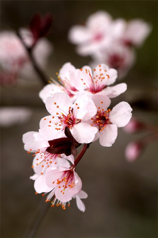 满树芳菲红叶李,疏枝密蕾遍流霞。
