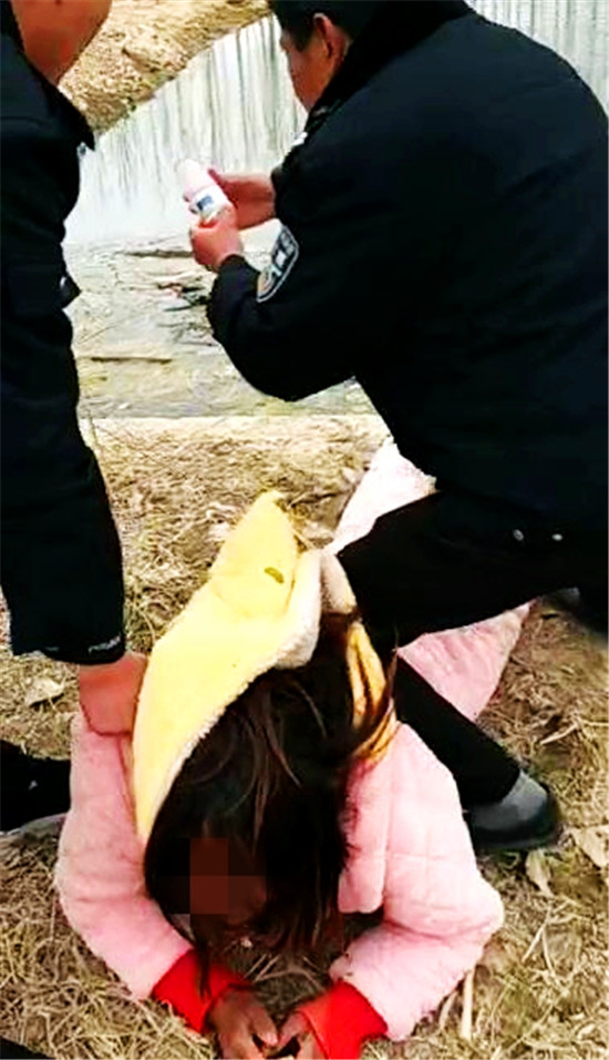 同一时间,该女子的家人也赶到。他们相互配合,民警将这名轻生女从河边拉出,夺下手中的药瓶子。