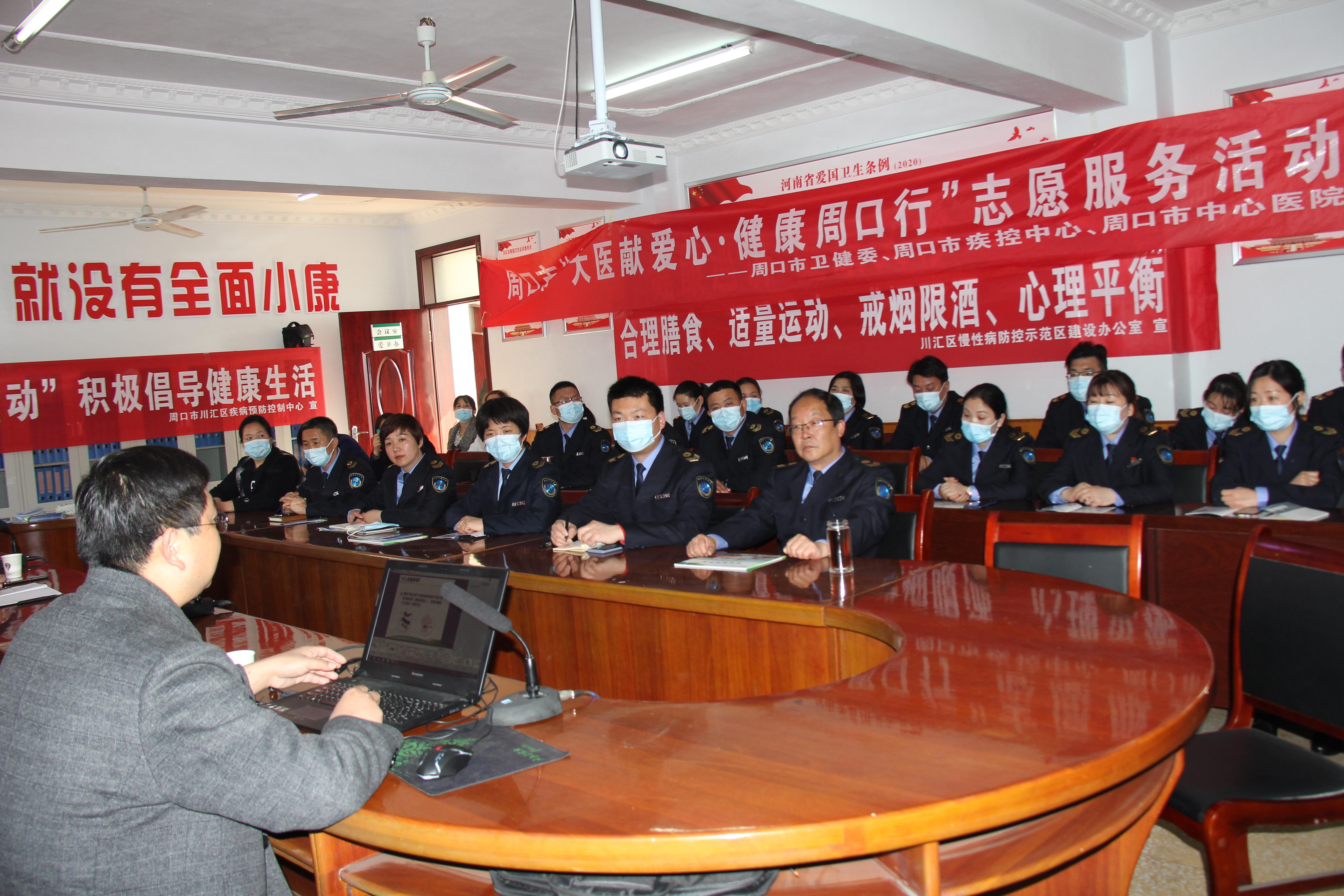为深入开展“河南省新时代文明实践推动周”活动,3月4日下午,由川汇区卫健委组织,市健康教育所、市中心医院、区健康教育所、区疾病预防控制中心、区慢性病防控示范区建设办公室、人和社区卫生服务中心等单位承办的“新时代文明实践推动周”“健康周口行 大医献爱心”健康科普活动走进川汇区卫生计生监督所。讲座邀请周口市中心医院内分泌专家杨东辉为川汇区卫生计生监督所干部职工送上“糖尿病如何科学防治”健康科普知识讲座。