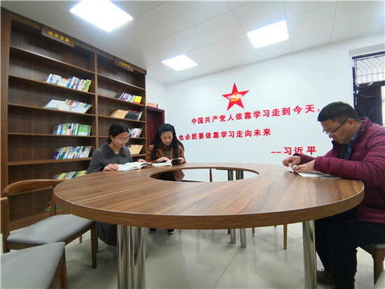 3月10日午饭过后,西华县迟营镇财税所工作人员冯艳伟、人大代表联络站工作人员邵枫然、党政办工作人员贾斐三人不约而同来到政府大院二楼刚刚升级改造完成的迟营镇党校“党建书吧”,坐在一起读起党史来。