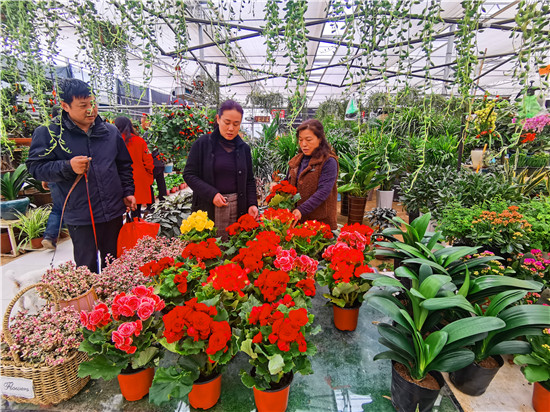 市民王敏和爱人专门来花卉市场买花,手里拎着刚买的玫瑰、长寿花、兰花、杜鹃,她说:“天气越来越暖和了,今天我来花卉市场多买点花,种在家里,看着心情好。”