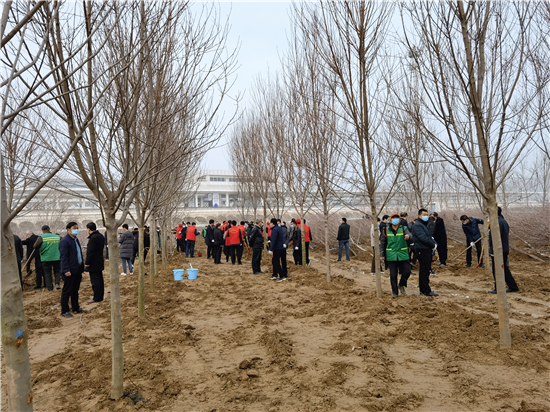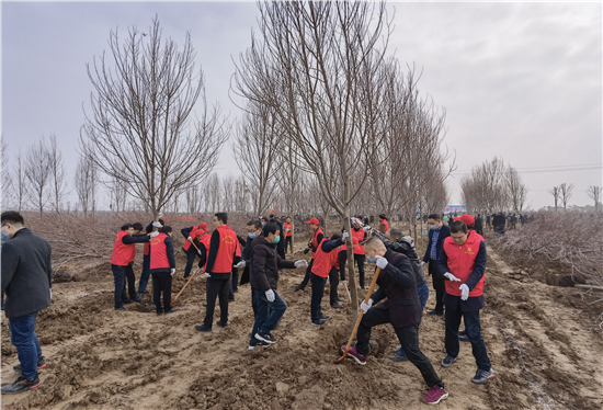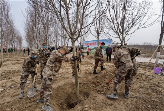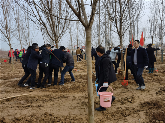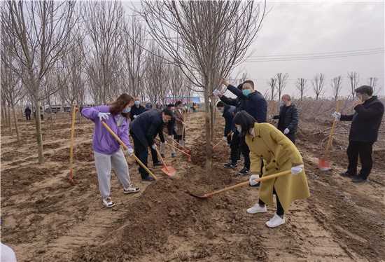 3月12日是全国第43个植树节,我市社会各界群众来到高铁片区义务植树基地开展义务植树活动,为森林周口建设增绿添彩。栽下棵棵树苗,留下一片新绿,大家一起扶苗、培土、围堰、浇灌,现场呈现一派热火朝天的繁忙景象。②7