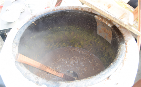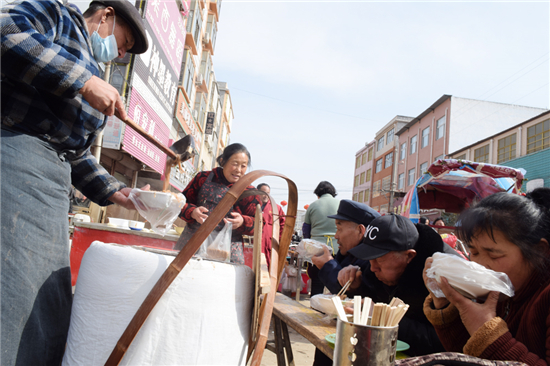 东夏亭镇的刘家豆沫没有青菜,豆腐皮多,格外粘稠,和周口其他地方的豆沫不同,味道醇厚、清香,是镇上最受欢迎的一道美味,从清晨集市开始到中午散集,前来喝豆沫的络绎不绝,两大锅豆沫卖个净光。