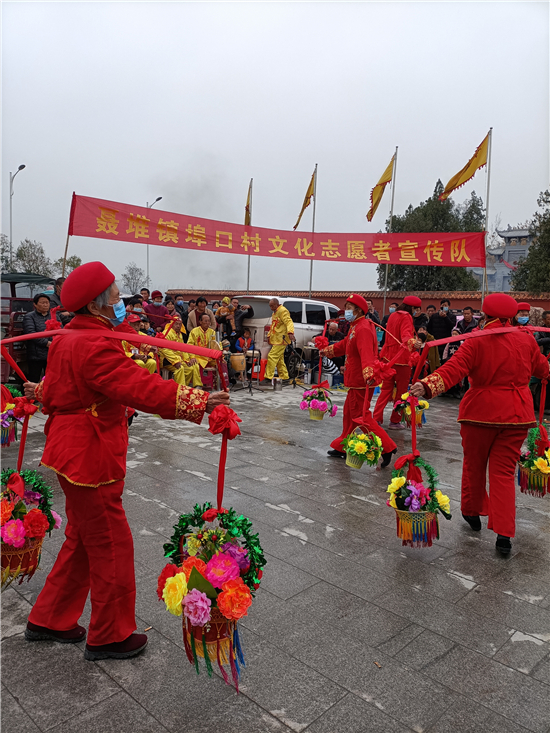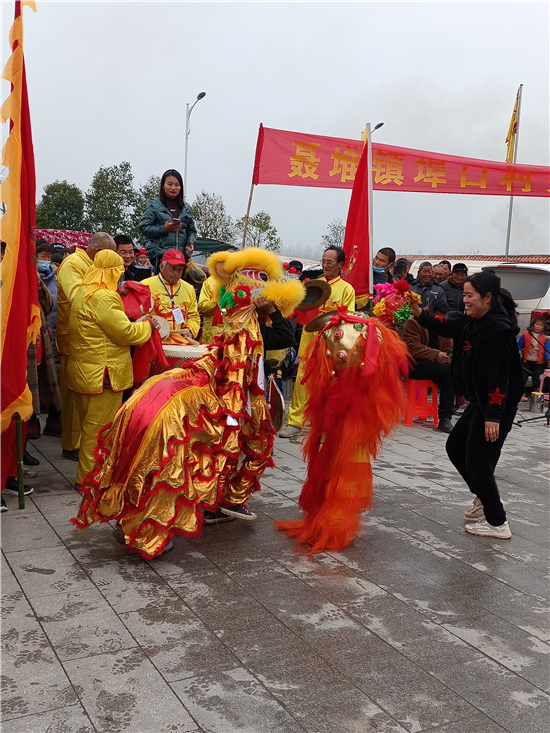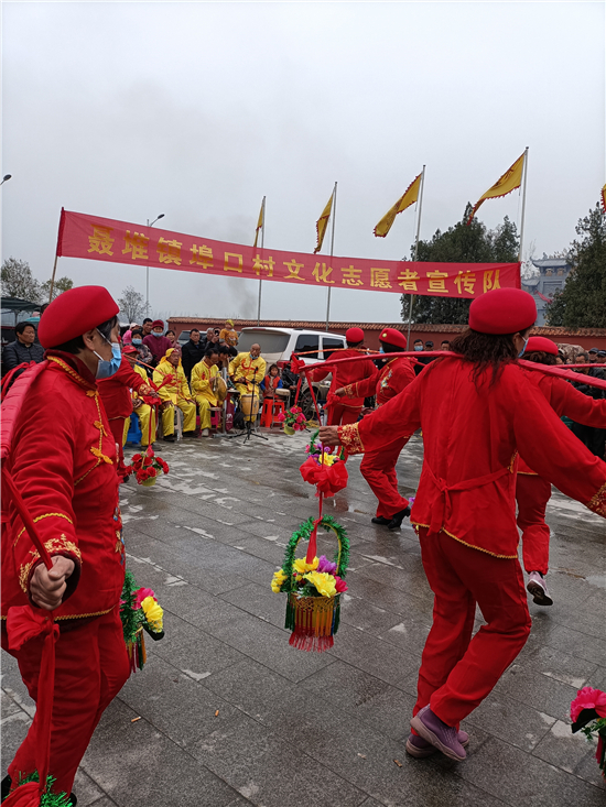 二月二,龙抬头。3月14日,西华县女娲城门前的广场上,写着“聂堆镇埠口村文化志愿者宣传队”的红色条幅前吸引了众多游人。这些志愿者们用群众喜闻乐见的舞狮、戏曲等传统文艺节目,自编自演脱贫攻坚给村民们带来的新变化,宣传党的富民政策,鼓励大家参与到乡村振兴工作中。