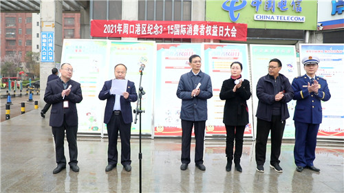 市市场监管局二级高级主办赵学军,港区党委委员、纪委书记李素芹出席活动。港区荣获2020年度周口市“文明诚信经营示范商户”代表,港直相关单位、李埠口乡政府负责人,港区医院等企业组织方队,市市场监管局港区分局全体同志,周口日报社等新闻单位以及前来参观的消费者们参加了纪念大会。活动大会上,港区分局副局长赵珂回顾总结了2020年全区消费者权益保护工作,对2021年“3.15”活动期间的消费维权工作作了安排。