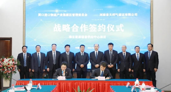 周口港口物流产业集聚区位于周口市产业发展核心区,是河南省内唯一以内河港口为依托的新兴产业集聚区,是中原城市群连接长三角城市群、深度融入“海上丝绸之路”的重要节点,具有独特的航运和多式联运优势。河南省天然气储运有限公司作为全省天然气储气设施建设平台,认真贯彻习近平总书记“加快天然气产供储销体系建设”重要指示精神,以“价值党建”为引领,积极推进储气设施建设“河南模式”在中原落地,六座区域LNG应急储备中心全部建成,“引海气入豫”实现“破冰”,LNG贸易全面铺开,为投资建设豫东能源项目奠定坚实基础。双方实施战略合作,对于助推“气化河南”战略落地、河南经济社会高质量发展具有重要意义。