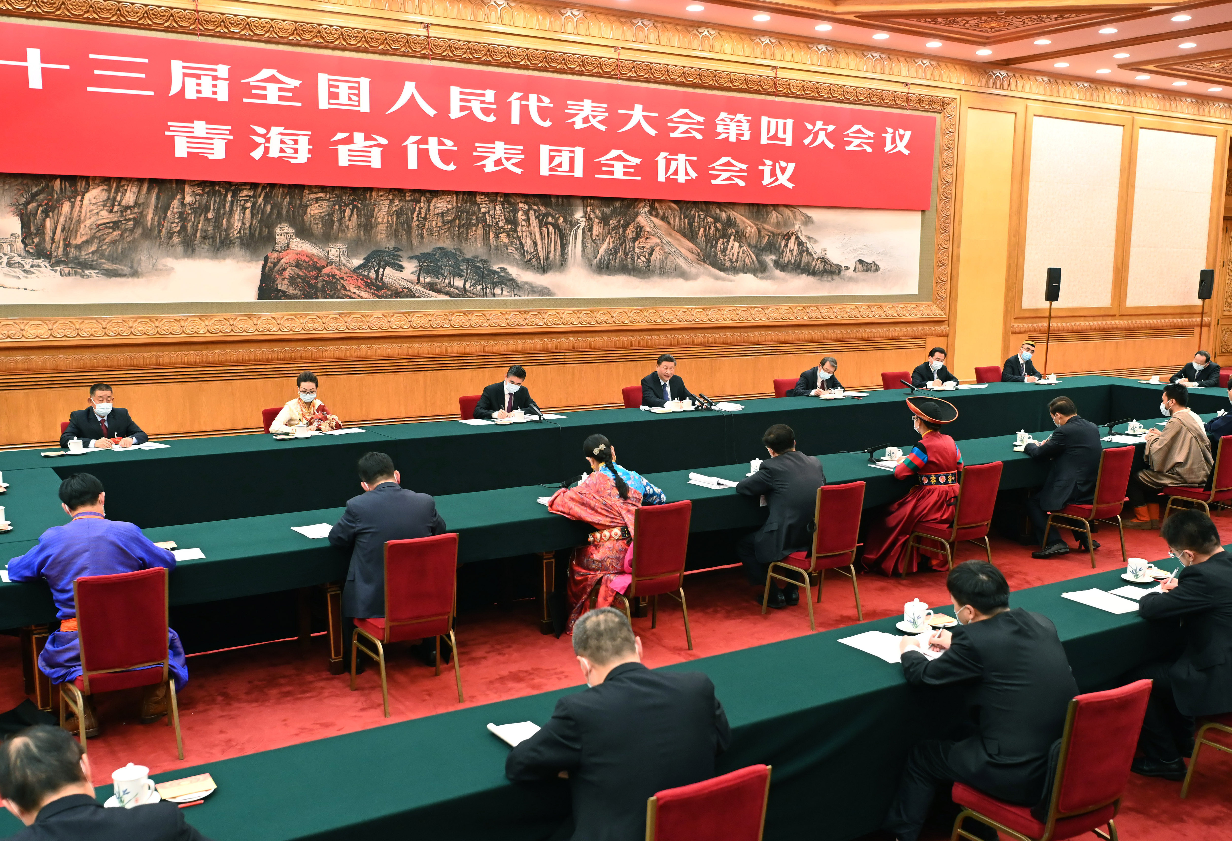 2010年,习近平专程赶赴青海玉树地震灾区,看望慰问灾区各族干部群众,考察灾后重建工作。7日下午,习近平总书记在青海代表团参加审议时,听说玉树实现了“苦干三年跨越二十年”,十分高兴。他说:“我非常牵挂玉树,一直关注玉树灾后重建,为玉树的发展而高兴。你们因地制宜,将生态保护、经济发展、民生改善统一起来,希望你们沿着这条路继续走下去。”
