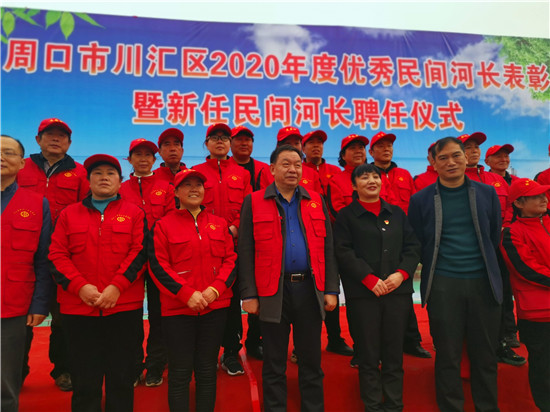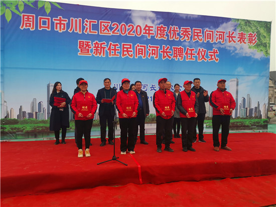会场设在中州路桥北头向东100米的沙颍河北岸。区河长办主任李海涛宣读《川汇区河长制办公室关于表彰2020年优秀“民间河长”的决定》《周口市川汇区河长制办公室关于聘任“民间河长”的通知》。与会领导共同为10名受表彰的优秀“民间河长”颁发荣誉证书,为20名新任“民间河长”颁发聘任证书。