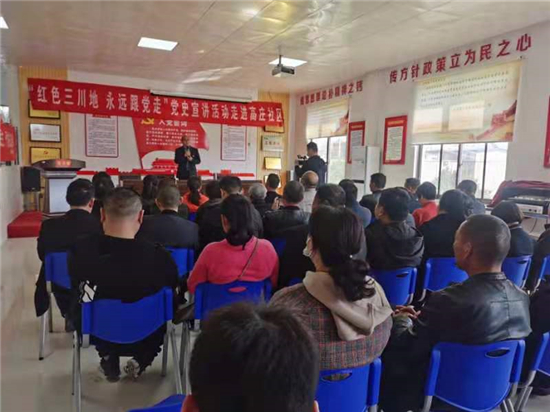 3月25日下午,川汇区“红色三川地 永远跟党走”党史宣讲活动走进小桥街道办事处高庄社区,社区宣讲团成员范云峰作主题宣讲。