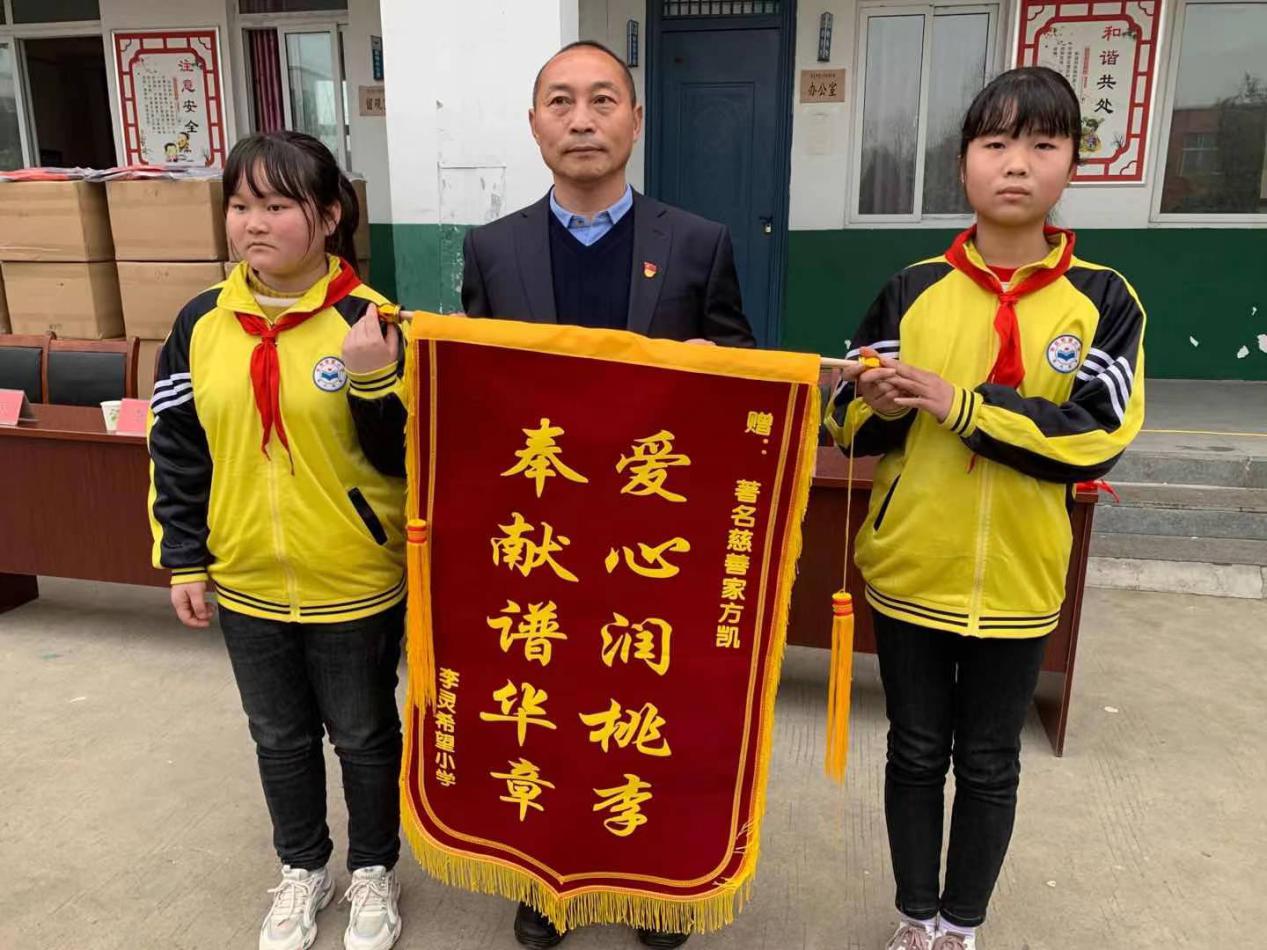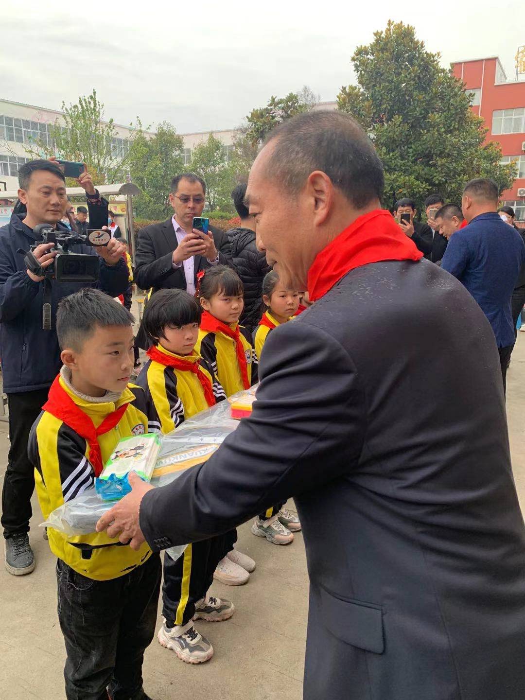 方凯说,自己在取得成功以后,始终没有忘记社会上的弱势群体,没有忘记留守儿童,没有忘记孤寡老人,坚持捐款捐物帮助他们渡过难关。10多年来,累计捐款捐物近2000万元。今天,我为希望小学捐赠价值18万元的校服,为30名学生每人发放书包、文具和500元慰问金。在这里,我可以告诉大家,今天来希望小学是第一次,但不是最后一次。今后我会年年来、经常来。方凯的话音未落,现场响起热烈的掌声。