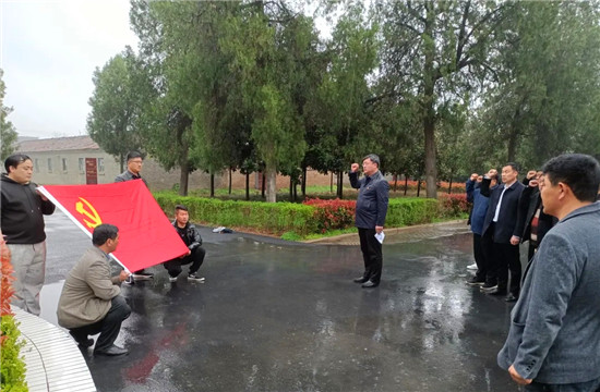 在五七干校旧址,大家通过观看馆内大量留存的图片、文字、实物等珍贵资料,再现了老一辈党员干部在困境中坚持服务基层、服务百姓的感人场景,受到了一次鲜活的革命传统教育和精神洗礼。纷纷为“五七”干校干部职工身处逆境乐观向上、艰苦奋斗的精神点赞。随后,在鲜红的党旗下,大家庄严地举起右拳,重温了入党誓词。