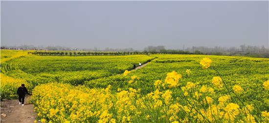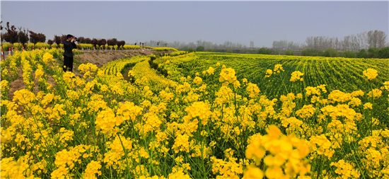 3月29日,商水县邓城镇油菜花花开正盛。商水县邓城镇沿沙河种植4000多亩黄色、粉色等多色油菜花,为沙河沿岸风光增加了色彩,吸引了不少附近县市群众赏花游玩,同时也带动了养蜂、榨油等相关产业。