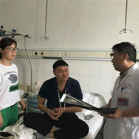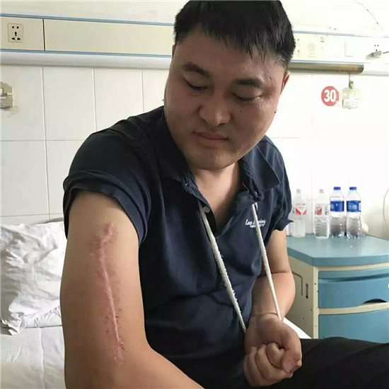 彼时,嫌疑人驾驶三轮车疯狂逃窜至一片树林,孙艳峰立即绕过树林飞奔到嫌疑人车前,同时大声警告他停车,嫌疑人丧心病狂,加速向孙艳峰撞来,孙艳峰展开双臂,用自己的身体挡住了嫌疑人的去路,左臂火辣辣的剧痛直钻心底,嫌疑人跳车夺路而逃。忍着剧痛,孙艳峰只能死死拉住嫌疑人,最终在队员的配合下,成功将嫌疑人抓获。这时,孙艳峰才发现自己左肩脱臼、右腿大面积擦伤。将嫌疑人带回县办案中心后,孙艳峰剧痛难忍,到医院检查,发现左肩关节盂粉碎性骨折。