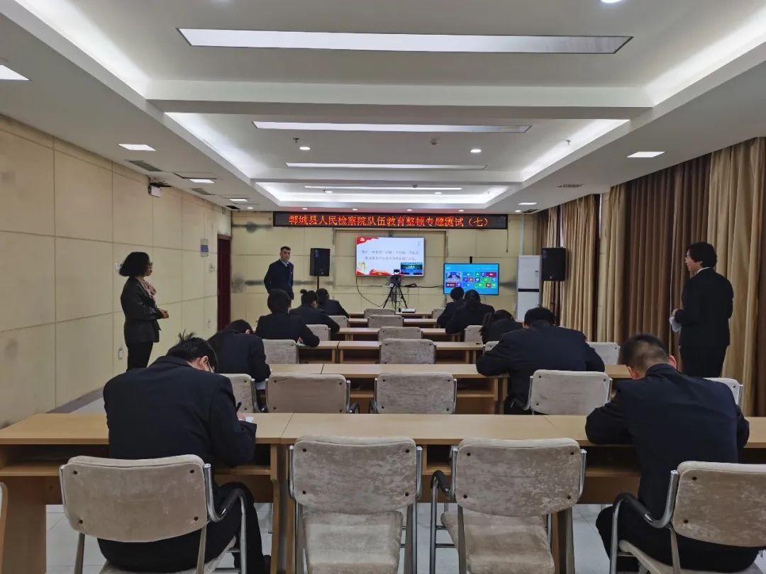 驻点指导组认真查看郸城县院教育整顿工作资料,了解县院宣传氛围营造情况,抽查干警学习笔记,组织教育整顿应知应会知识测试。