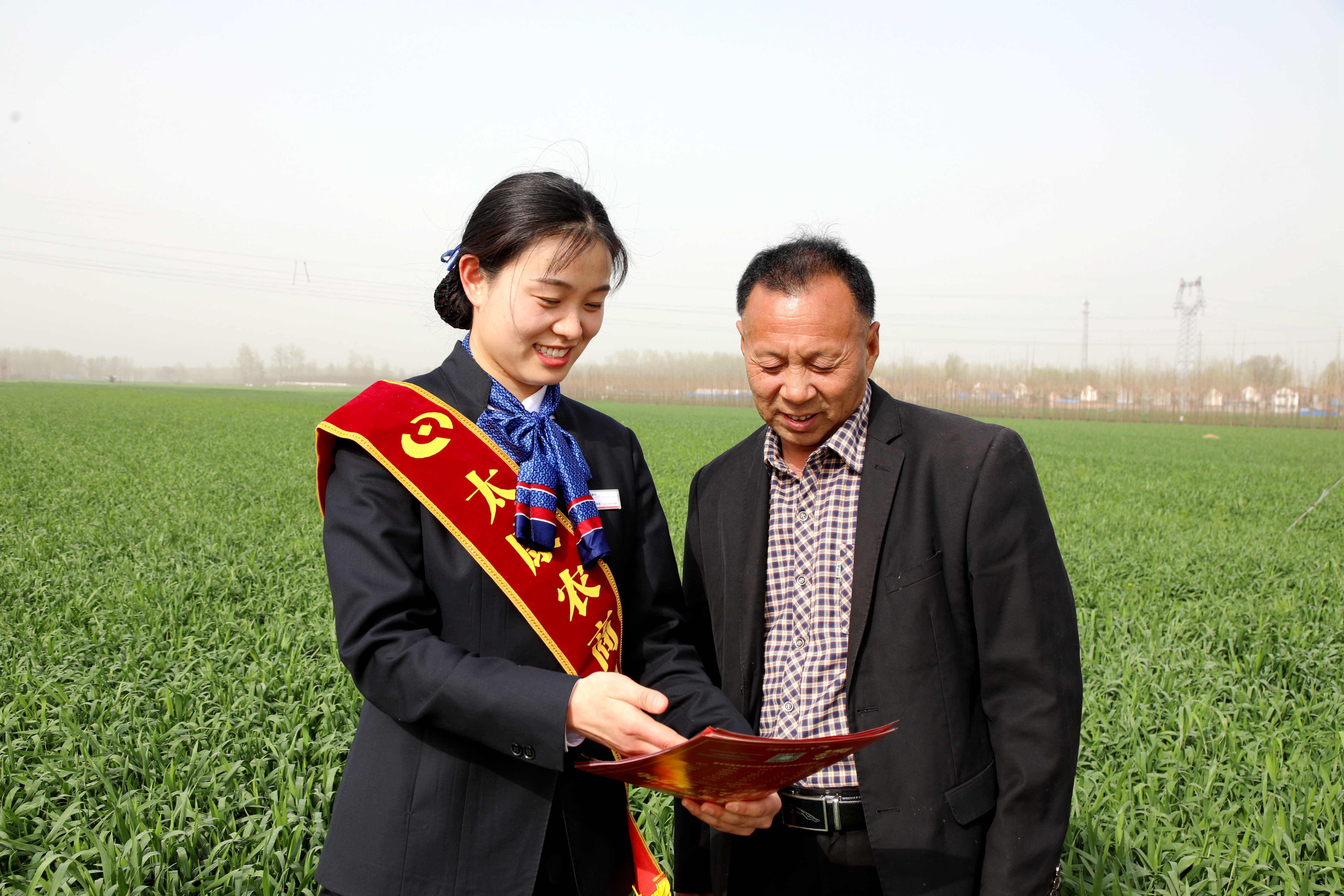 图为,太康农商银行员工深入到田间地头,将金融服务送到了春耕现场。