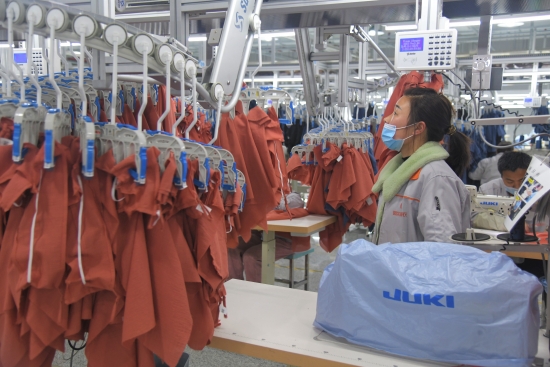 该园区总投资48亿多元,分三期建设,集棉纺、面料、印染、成衣、进出口贸易等于一体,长期代工雅戈尔等国内外顶尖品牌,全部建成后,每年可实现营业收入118亿元,上交税收约6亿元,填补我市纺织服装行业缺少高端品牌的空白。该园区2020年3月动工兴建,10月可容纳3000名员工的1号、2号服装车间建成并投产运行,今年第一季度产销两旺,实现开门红,预计全年可生产2000万件高档成衣;二期制衣项目、印染项目也将于今年陆续建成并投产。 周口日报·周道客户端记者 付永奇摄③2